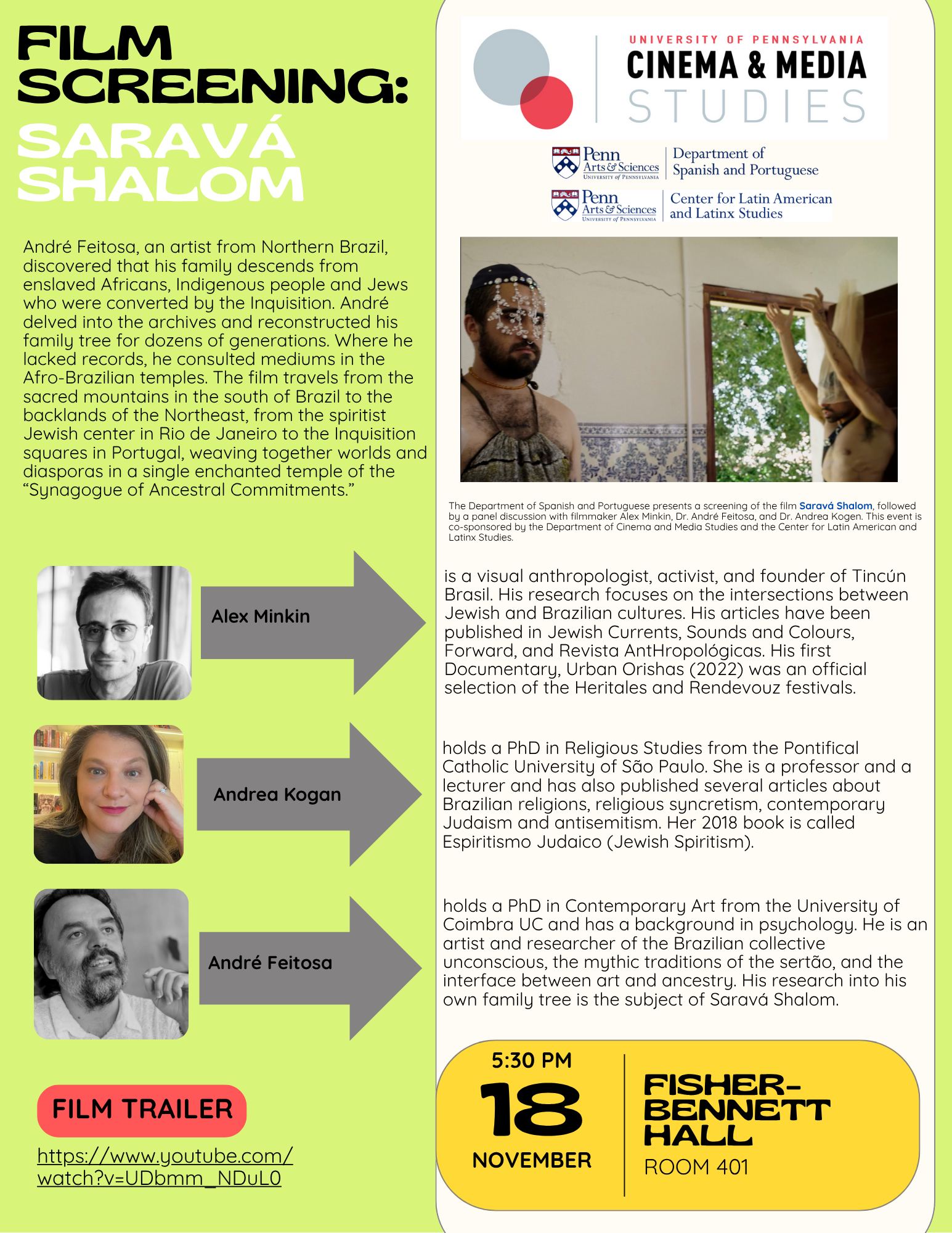Why would a poor Jewish spirit want to possess someone in Brazil, with its heat and inflation? Since 2012, cultural anthropologist Alex Minkin has conducted research in order to answer this question, exploring the origins and nature of spirits of Jewish rebels, sages, and prostitutes in Brazilian religions—Spiritism and Umbanda. With professor Andrea Kogan (author of Brazilian bestseller ‘Espiritismo Judaico’/’Jewish Spiritism’), Padrinho Jonathan Goldman (https://essentiallight.org/), filmmaker Larissa Figueiredo (www.cazumbafilmes.com), Umbanda medium and singer Beatriz Schneider and Yiddish Brazilian songwriter Rosa Morena Russa (http://rosamorena.de).